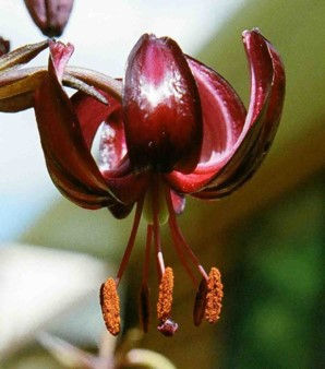 Notes: Blackberry-red with almost black tips; spotless; nectaries strong purplish-red; reverse of petals deep red with strong, purplish-red midribs; reverse of sepals strong purplish-red; strongly recurved; c.16fls; dark stems. (Dowd, 2023, p.138).